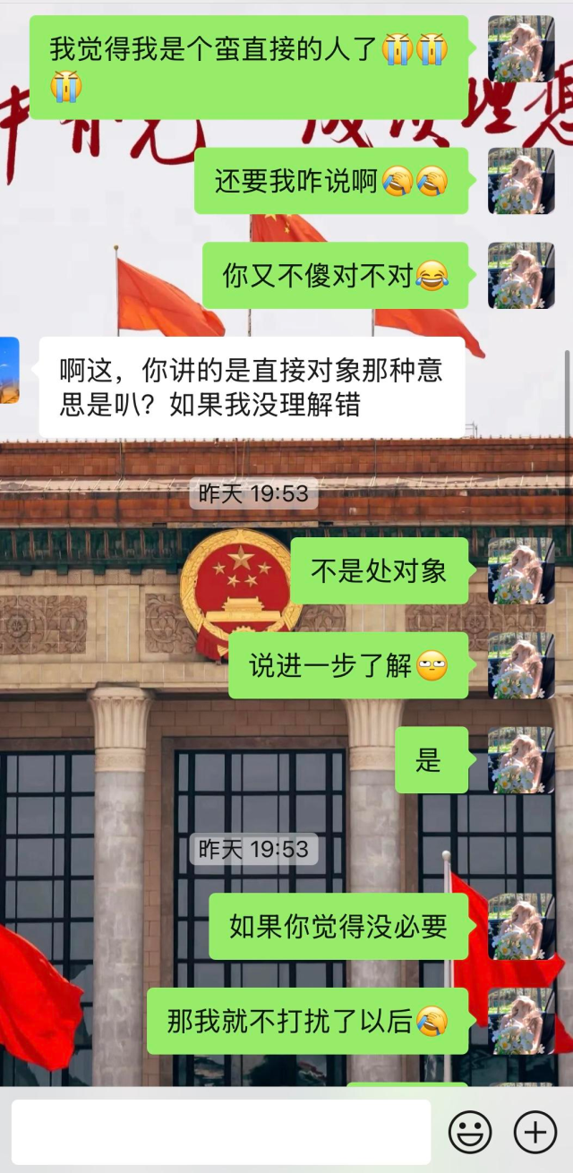 这一个月我们每天都聊得热火朝天,突然星期天开始到昨天就不理我了,发消息没回,但是在群里召集打球,我不开心就想摊牌了。